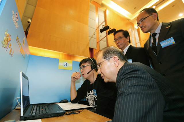In December 2015, CSD jointly held the Job Fair for Rehabilitated Offenders again with the Chinese Manufacturers’ Association of Hong Kong and Merchants Support for Rehabilitated Offenders Committee Limited. During the event, employers were gathered in one place to conduct interviews with persons in custody in correctional institutions via computer video conferencing technology. It provided a platform for persons in custody who would be released soon to look for jobs, thus helping them reintegrate into society quickly after release.