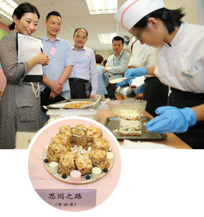 Persons in custody at Lai King Correctional Institution joined a charity dessert competition organised by Zonta Club of Hong Kong on July 4, 2015. Renowned chef Jacky Yu (second left) and Chinese herbalist Louisa Wong (first left) judge the entries.