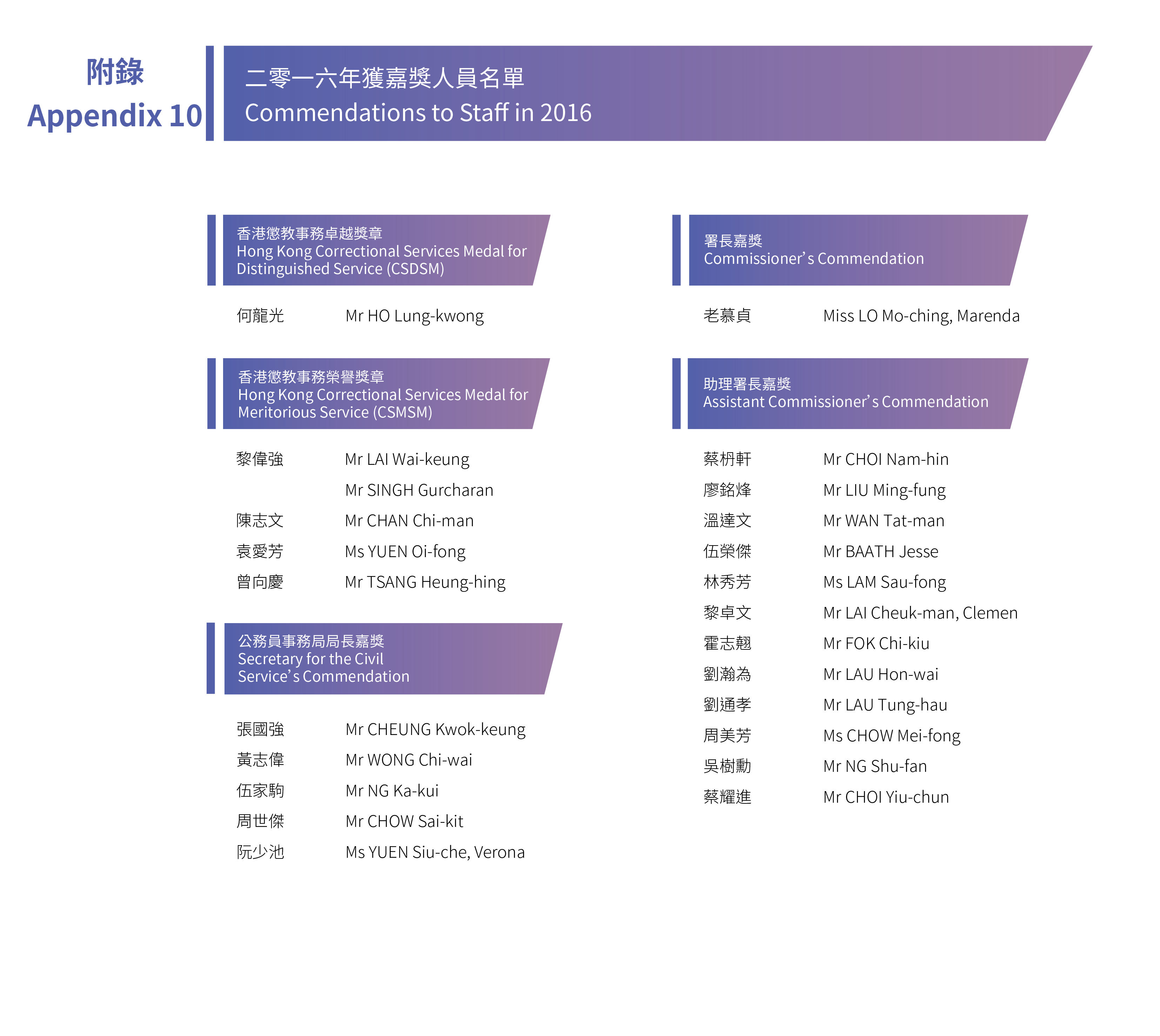 Appendix 1 Organisation chart of Correctional Services Department Headquarters