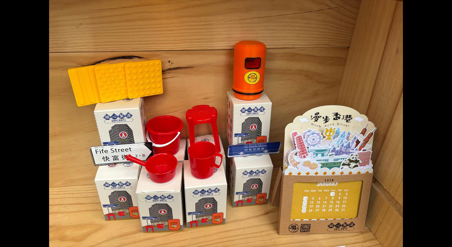本署於上月13至16日在維多利亞公園參與由中華廠商會舉辦的「第59屆工展會」,並設置攤位售賣多款由在囚人士製作的手工藝品,包括迷你玻璃纖維垃圾桶、交通標誌環保玻璃磚杯墊及街道名牌姓氏門牌等。攤位亦首次發售「徵心製造」與香港老字號品牌「紅A」聯乘推出的盲盒產品。
