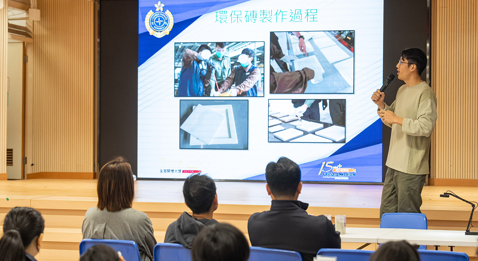 為進一步落實「玻璃樽回收環保教育計劃2025-2026」(玻璃樽回收計劃)中宣揚環保及推廣助更生信息的目標,本署工業組人員於11月22日在仁濟醫院何式南小學舉辦「玻璃砂杯墊工作坊」,向小學生詳細講解玻璃樽回收的處理過程及玻璃砂的應用,並指導學生親手製作獨一無二的玻璃砂杯墊,從實踐中學習資源循環再用的意義,亦透過活動讓參與學生認識助更生信息。